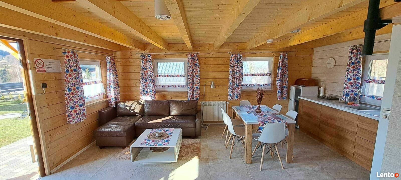 – Przestronny salon, z narożnikiem 2 osobowym wraz z wyposażoną kuchnią i jadalnią